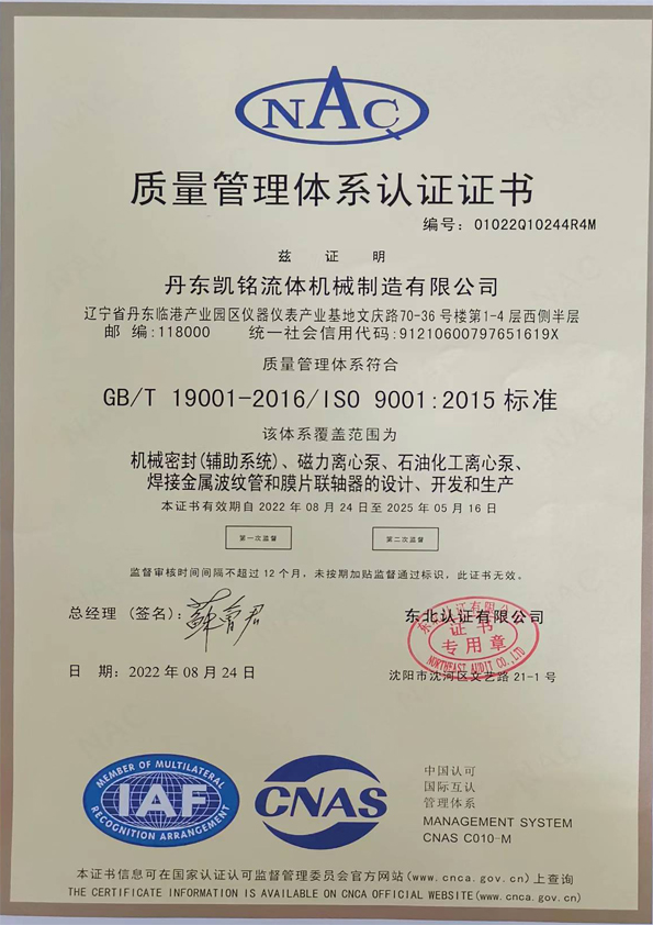 丹東凱銘流體機(jī)械制造有限公司坐落于風(fēng)景旖旎的邊境江城---遼寧丹東,是一家集設(shè)計(jì)、制造、銷售、服務(wù)于一體的流體機(jī)械專業(yè)制造公司,主要產(chǎn)品有:機(jī)械密封及輔助系統(tǒng)、膜片聯(lián)軸器、焊接金屬波紋管、泵及壓縮機(jī)配件。產(chǎn)品廣泛應(yīng)用于石油煉制、化工、電力、冶金、食品、制藥、印染、煤礦、船舶制造等領(lǐng)域。